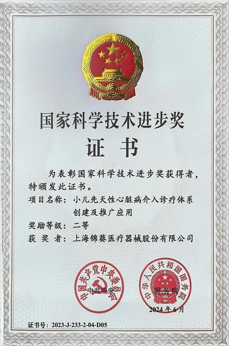 6月24日,全國科技大會、國家科學(xué)技術(shù)獎勵(lì)大會、兩院院士大會在京召開。會上公布了2023年度國家科學(xué)技術(shù)獎獲獎名單。其中,創(chuàng)投集團(tuán)被投企業(yè)上海錦葵醫(yī)療器械股份有限公司(以下簡稱“錦葵醫(yī)療”)參與完成的“小兒先天性心臟病介入診療體系創(chuàng)建及推廣應(yīng)用”項(xiàng)目榮獲國家科學(xué)技術(shù)進(jìn)步獎二等獎!